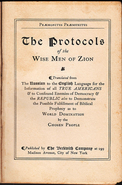 2. The Protocols of the (Learned) Elders of Zion - This is the Wikipedia entry for the document that does an excellent job in a summary format exposing the fraud and forgery behind it. This is an excellent place for one to begin their research.
